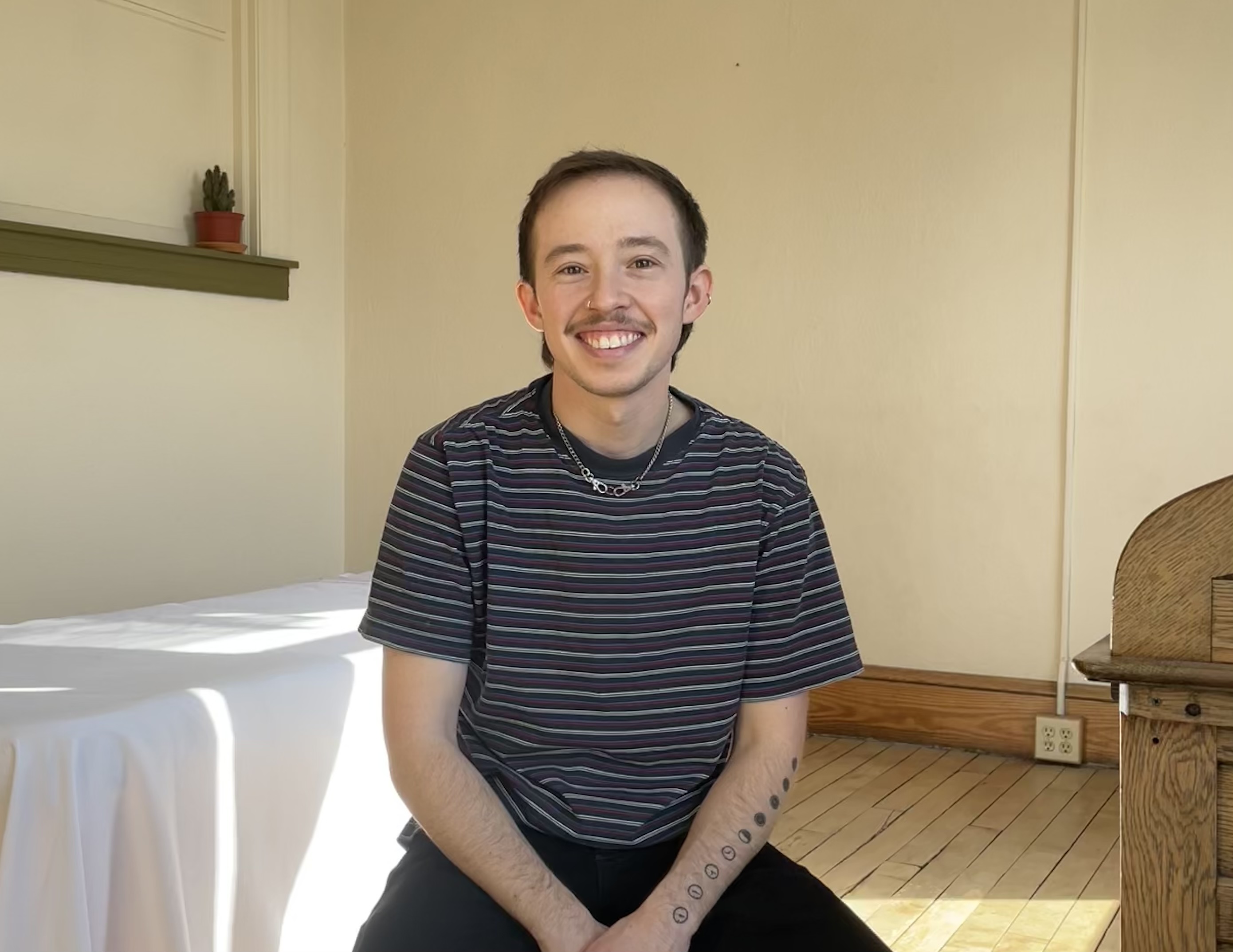 I offer massage in my private studio located in downtown Northampton, Massachusetts. I am here to support your long-term wellness and healing and offer massage that is attuned to your specific bodily and life experiences. As a queer and transgender individual, I strive to make my studio space comfortable and safe for all people. I invite you to join me in a collaborative practice of care for your body.
